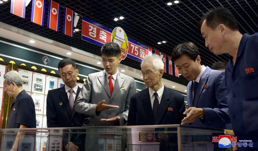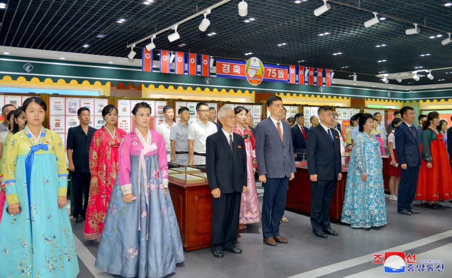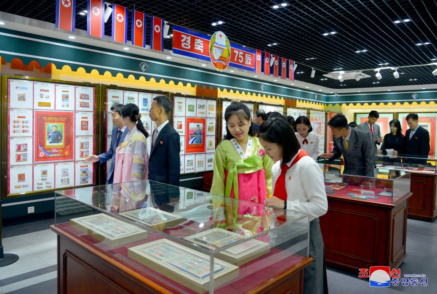 朝中社平壤9月6日电 庆祝朝鲜民主主义人民共和国75周年邮票展拉开了帷幕。